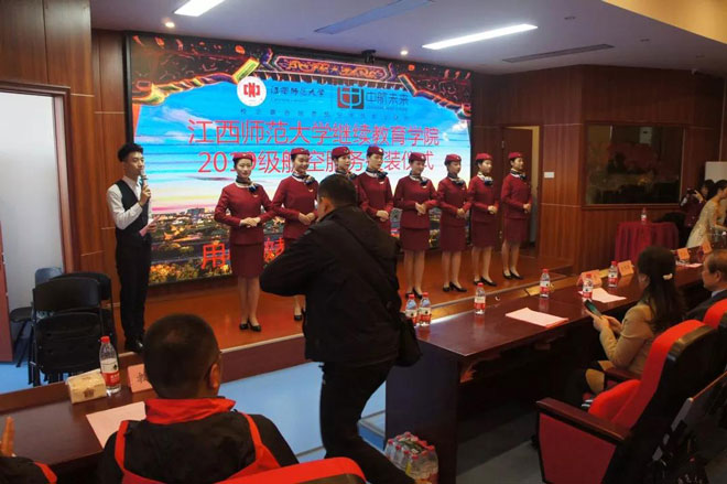 校企合作的人才培养模式是教育部和省教育厅大力提倡和支持的。江西师范大学继续教育学院与北京中航未来科技集团有限公司携手开展航空服务职业教育校企合作,通过主动适应国内外民航业的快速发展和相关人才的全面发展需求,结合学校办学优势和企业先进的人才培养模式,强调培养体系的针对性和实效性,以学员就业为导向、技能培养为主导,致力于培养文化素质和语言能力更强、专业技能更高的现代民航服务人才,为你们提供了优秀的学习平台。